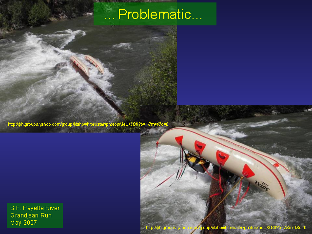 This particular log can be passed on river-right, but the boater wasn’t paying close enough attention as they approached