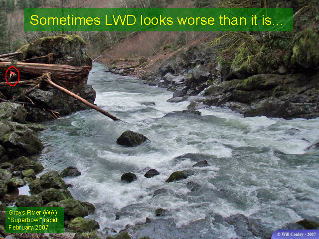 The diagonal log interferes with approach to the meat of the drop, but not a deal-breaker Looks worse than it is though, and was easily passed to the right. Note person (inside oval) for scale