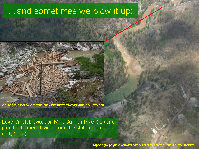 The resulting debris flow generated a debris fan that temporarily dammed the MF. A LWD jam formed downstream at Pistol Creek rapid.