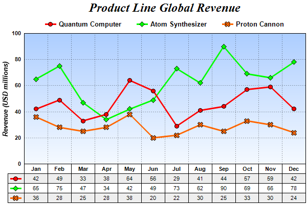 $title = $c->addTitle("Product Line Global Revenue", "Times New Roman Bold Italic", 18);