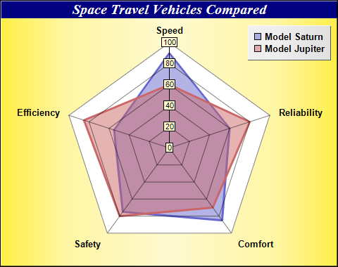 This example demonstrates a radar chart with two layers and a number of chart formatting effects.
