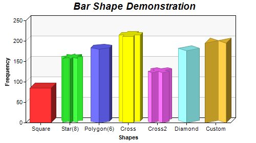 ChartDirector supports bars in cylindrical or arbitrary polygonal shapes. This is specified by using