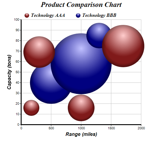 This examples demonstrates a bubble chart using solid spheres as bubbles.