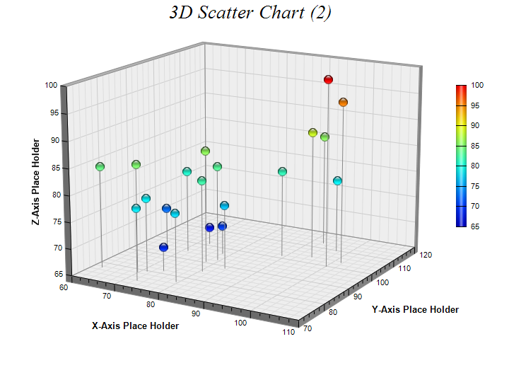 3D Scatter Chart (1) example by including drop lines, using alternative view angles and continuous coloring.